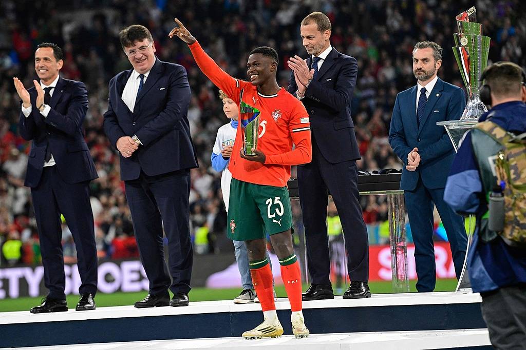 今夜的慕尼黑安联球场,见证了葡萄牙队夺得队史第二个欧国联冠军,同时这也是努诺-门德斯加冕世界第一左后卫的关键一役:此前他在欧冠赛场上“封杀”了萨拉赫和萨卡两位世界级边锋,而今年努诺-门德斯用出色的表现,完全限制亚马尔的发挥,这为葡萄牙队最终夺冠奠定了基础。为了表彰努诺-门德斯的精彩发挥,欧足联在赛后给他颁发了欧国联决赛最佳球员奖杯和欧国联决赛圈最佳球员奖杯。